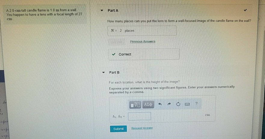 Solved A 2 0 Cm Tall Candle Flame Is 1 8 M From A Wall Yo