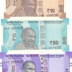 Bancnota India 10 50 Si 100 Rupii 2017 18 Pnew Unc Seria Noua