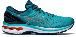 Women S Gel Kayano 27 Techno Cyan Sunrise Red Running Shoes