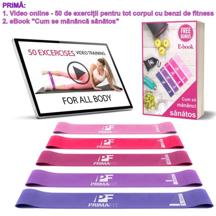 Benzi Elastice De Rezistenta Fitness Set De 5 50 Exercitii Video