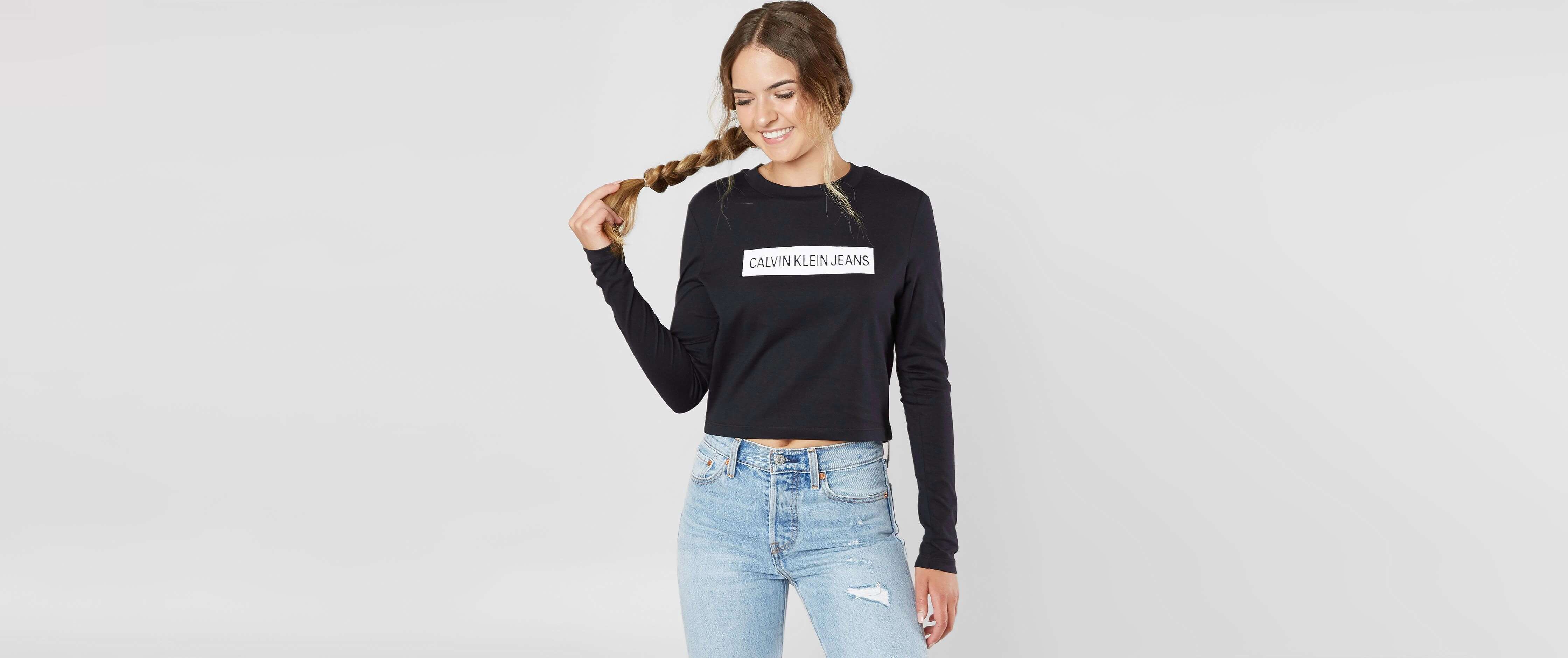 Calvin Klein Cropped T Shirt Women S T Shirts In Black Buckle