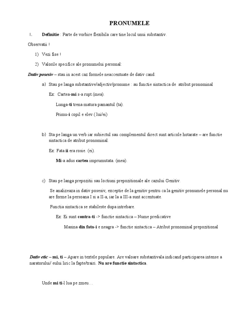 Limba Romană Pronumele Si Funcţionalitatea Pronominală Note