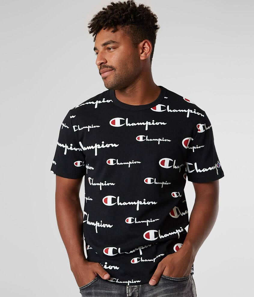 Black champion shirt champion men s classic graphic tee black medium. Men s classic jersey script t shirt. Champion boyfriend ice cloud dye long sleeve t shirt. Shop tees hoodies socks more now.