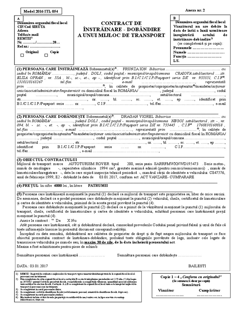 Formular Contract Vanzare Cumparare Auto Teramultifiles