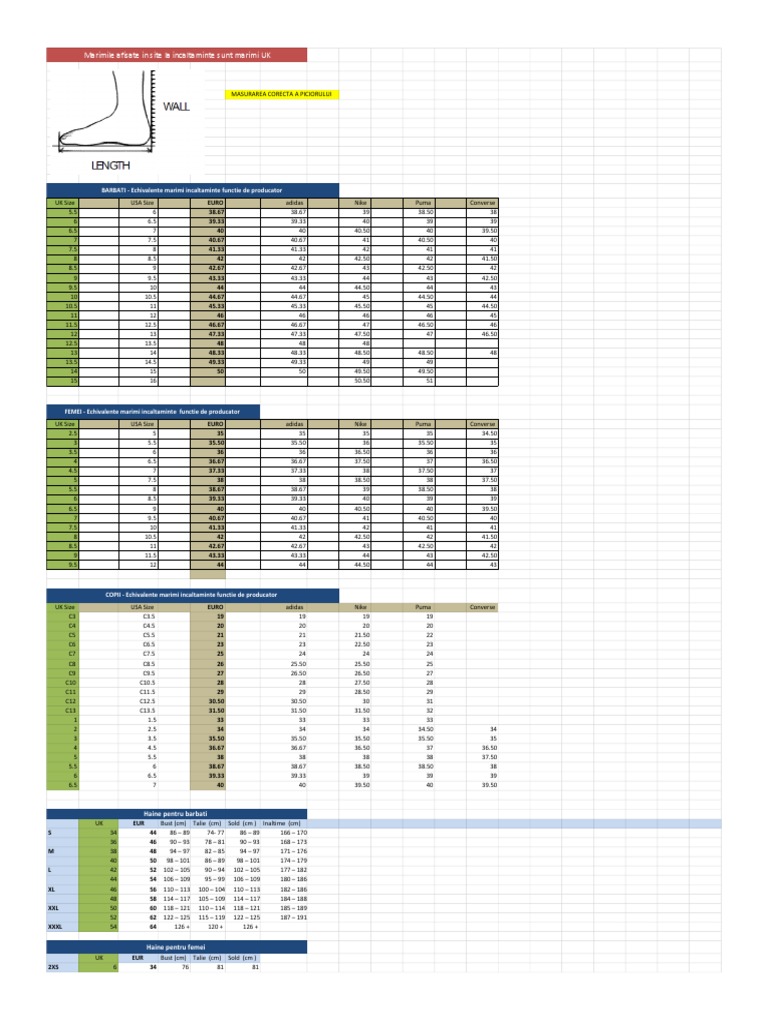Corespondenta Marimi Incaltaminte In Centimetri